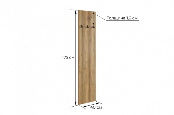 Принт, имитирующий вертикальную фрезеровку придает вешалке уникальный и современный вид, добавляя текстуру и глубину. Материал вешалки – ЛДСП, что обеспечивает прочность и долговечность, а также легкость в уходе.