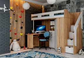 Благодаря универсальной сборке и универсальному углу, эту кровать-чердак можно легко адаптировать под планировку комнаты. Значит, даже в небольшой комнате она будет смотреться уместно и не займёт слишком много места, оставив пространство для игр или других активностей.